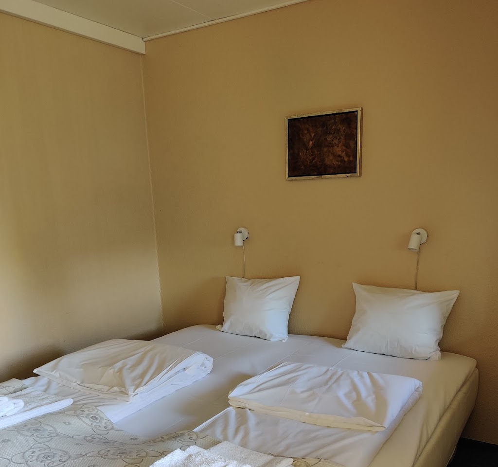 Værelset med minikøkken og badeværelse var meget pænt og rent. Badeværelset er lidt gammelt. Buffeten fredag aften var lækker, varieret (3 retter) men lidt uorganiseret. Desværre var desserten ikke nok til alle, da nogle "har hjulpet sig selv for meget". Vores hund var ikke tilladt i restauranten (tjeneren var lidt sur, da vi gik ind med hunden... vi så ikke et skilt). Vejret var fantastisk den aften, så vi spiste på terrassen, som var dejlig. Som et gebyr for hunden betalte vi €33,55 for en nat. Ganske meget, når værelset (til 2 personer) koster €146!! Området, haven og stemningen i restauranten er meget rart.