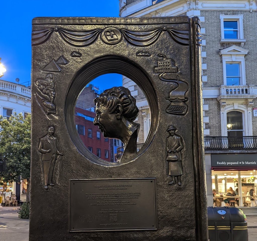 (Translated by Google) A nice statue of the detective queen Agatha Christie. The memorial to Dame Agatha Christie is located close to Covent Garden and the area is busy and easy to miss. The memorial is designed like a book. Very stylish and well worth a visit. (Original) En fin staty över deckardrottningen Agatha Christie. Minnesmärket över Dame Agatha Christie är beläget nära Covent Garden och det är liv och rörelse i området så det är lätt att missa. Minnesmärket är utformat som en bok. Mycket stiligt och väl värt ett besök.