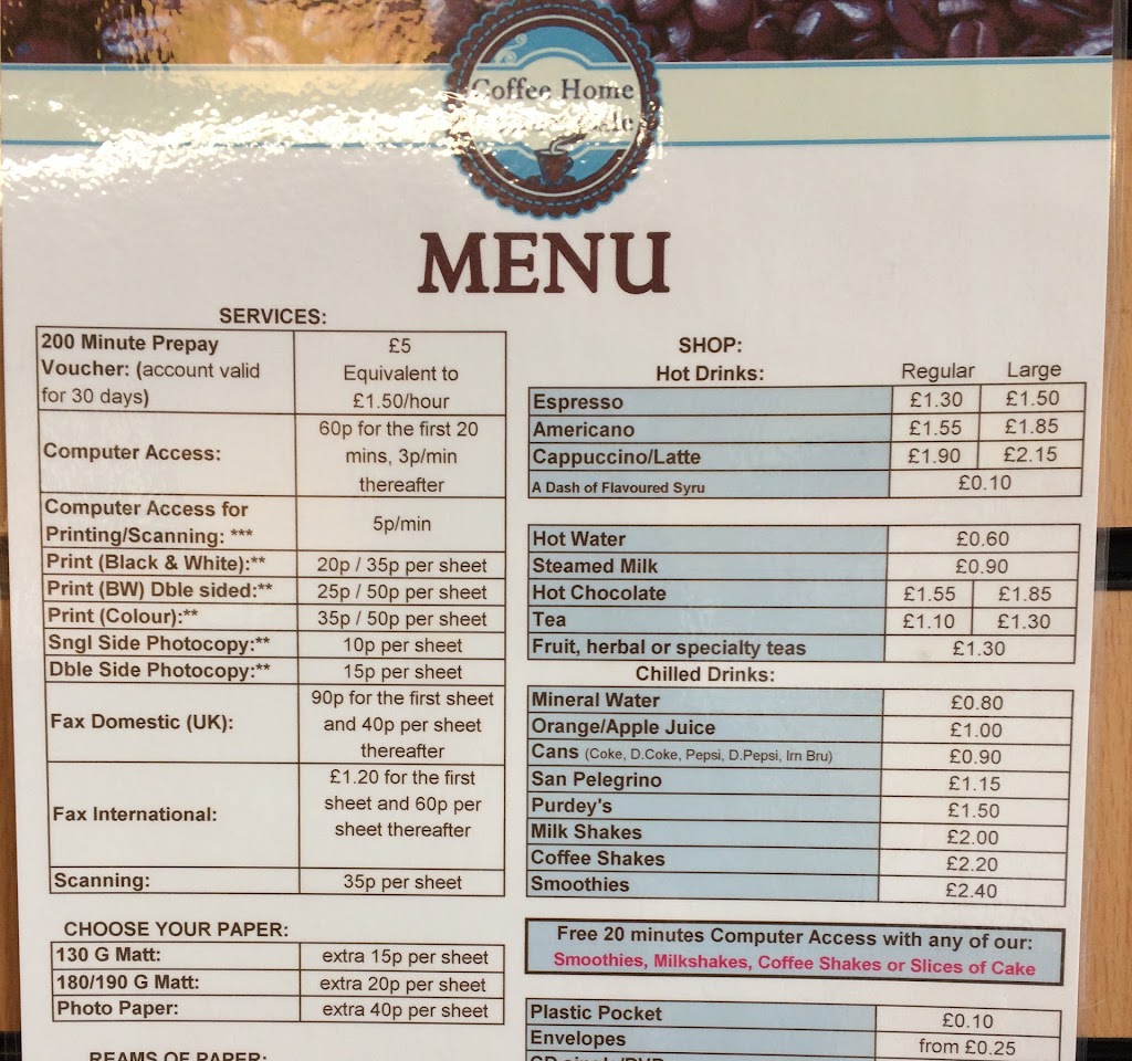 Coffee Home Internet Cafe provides customers with a wide range of services, including high-speed internet, printing, scanning, and photocopying. Customers can enjoy a cup of coffee while browsing the internet or working on their projects. The cafe also offers a selection of delicious snacks and meals at affordable prices.Location: A Convenient Spot in the Heart of Edinburgh
