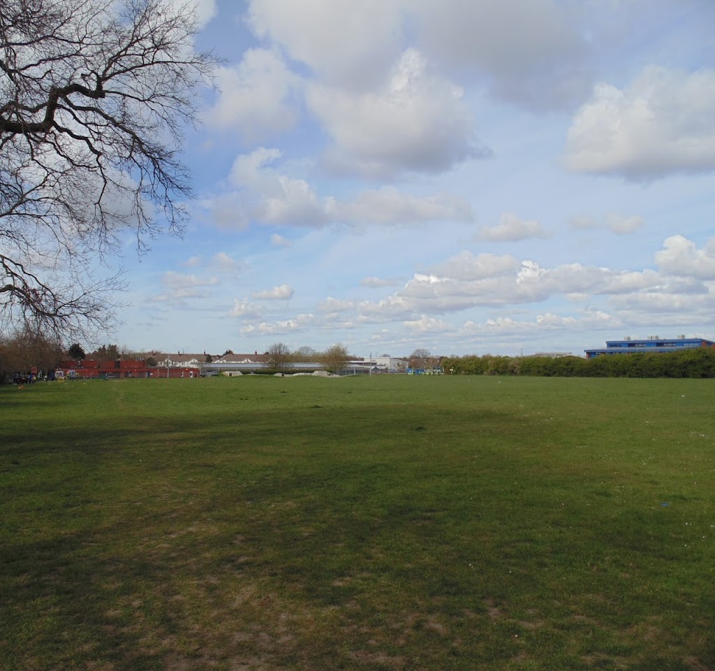 Open space with a playground and space for sports and walking.