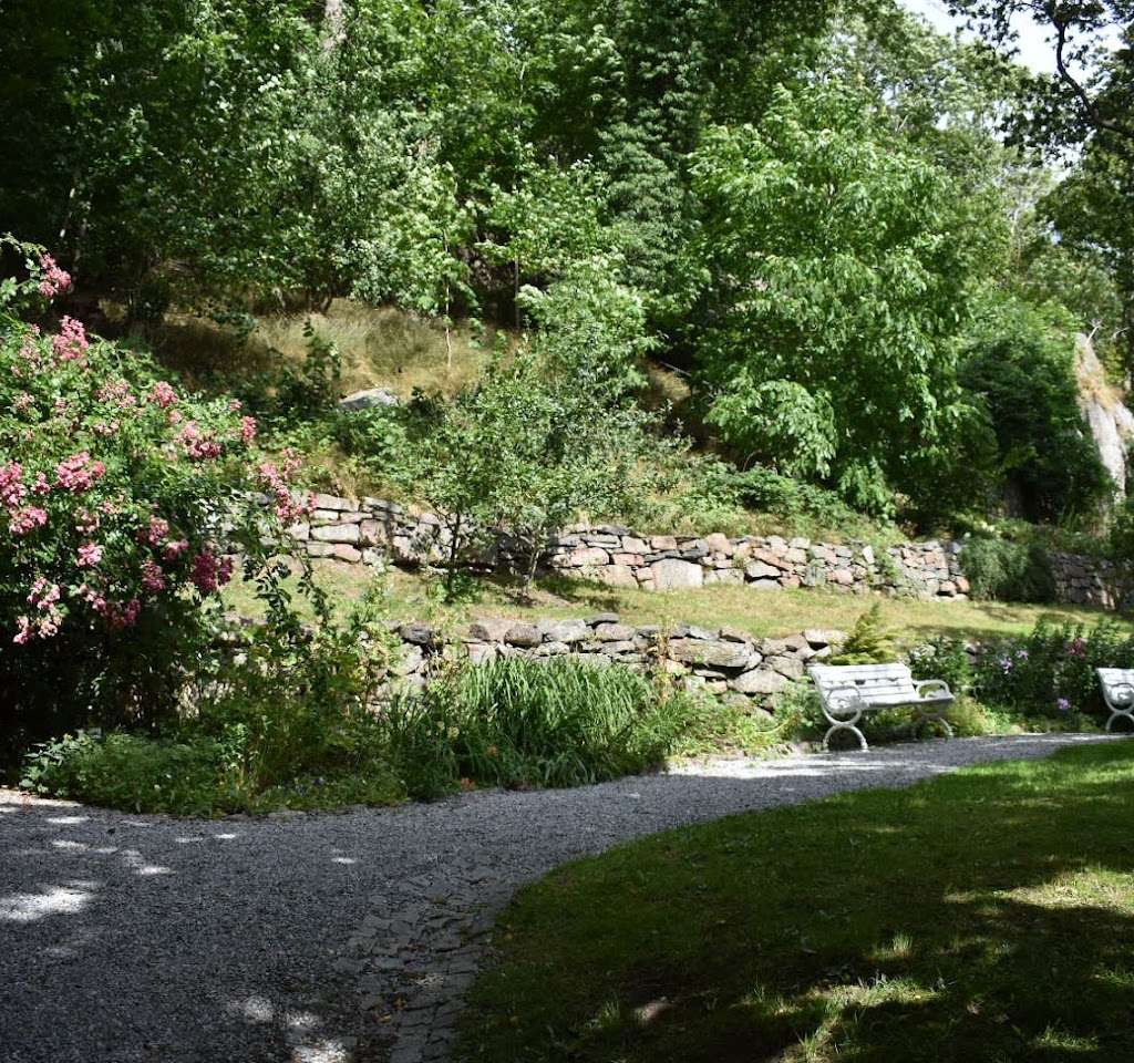 Mysig liten oas på en av Kungälvs fina gamla gator men gamla små hus. Bergig liten trädgård med bla vacker magnolia som blommar på våren. Små bänkar finns för medhavd fika.