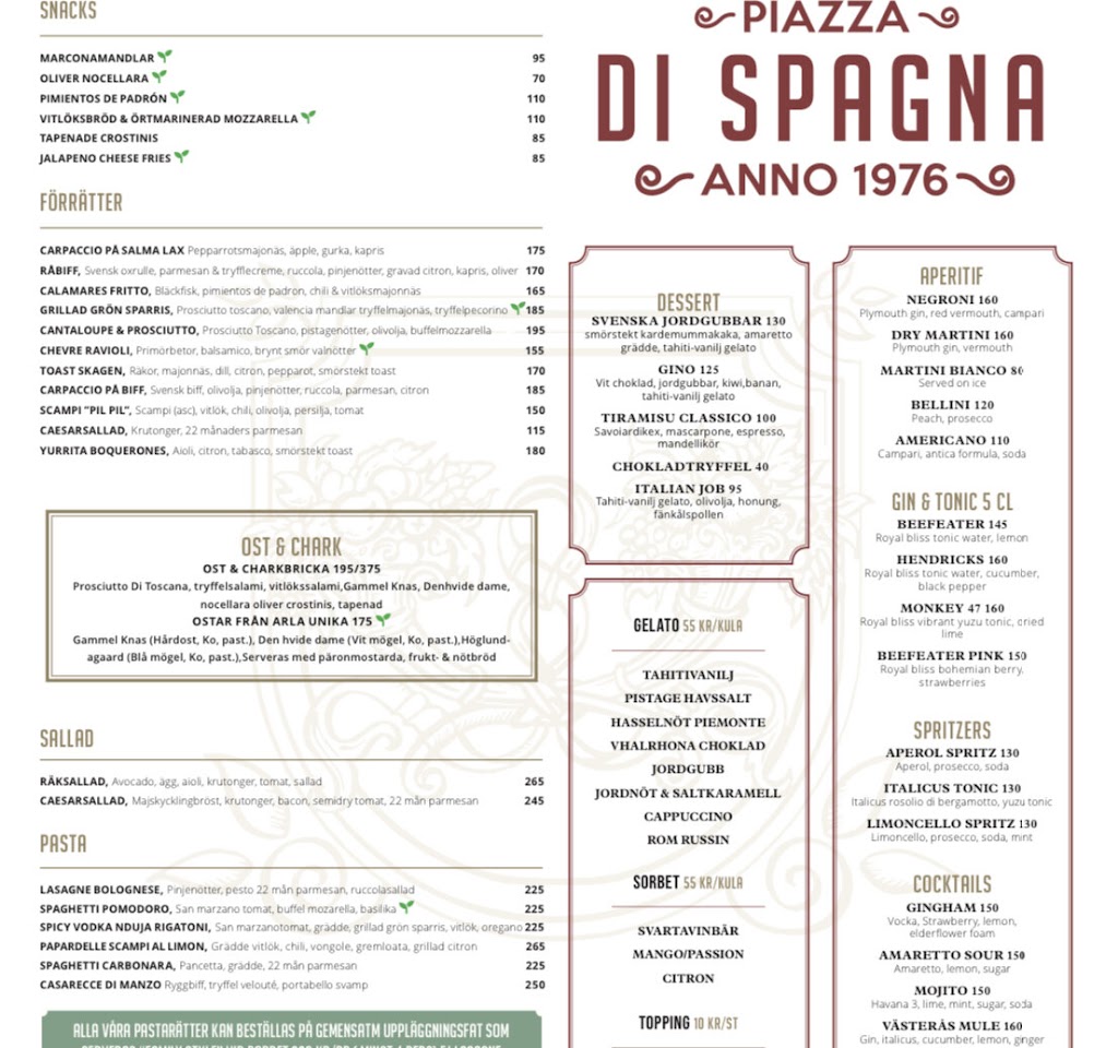 Di Spagna är en restaurang som är specialiserad på italiensk mat från olika regioner i landet. Restaurangen grundades med syftet att erbjuda autentiska smaker och rätter till sina kunder. Med en passion för matlagning och traditionella recept strävar Di Spagna efter att ge sina gäster en unik och minnesvärd upplevelse.