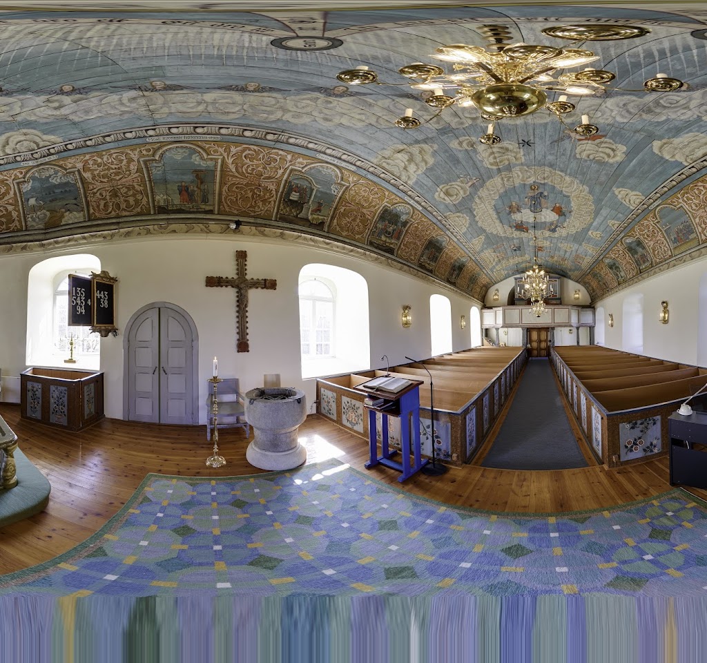 Fina målningar i en vacker liten kyrka. Väl värt ett besök också på grund av den vackra omgivningen.