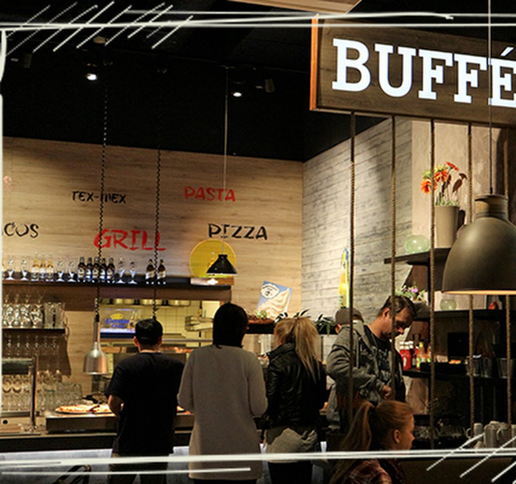 Prisvärd god buffé, men mycket smakade likadant. Smaklös sallad. Inredning ofräsch och trasig. Personal kommer och städar / sopar golv där vi sitter och äter. På bilden syns den slitna sitsen på en soffa. Annat var det på den tiden när restaurangen fanns på Järntorget.