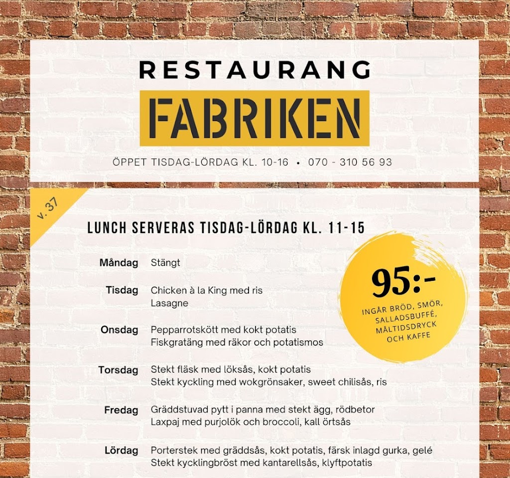 Restaurang Fabriken erbjuder ett brett utbud av läckra lunchalternativ till sina kunder. Med en varierad meny som inkluderar både traditionella rätter och moderna smaker, finns det något för alla smaker. Kunder kan också beställa mat för avhämtning om de föredrar att äta hemma eller på kontoret.