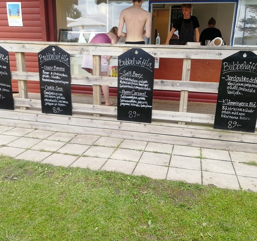 Ny har de ju inte våfflor längre så åker man dit för att äta våfflor blir man besviken. Åker man dit för att bada och äta korv/glass är det bra. Finns även godis fika och en food truck med arepas.